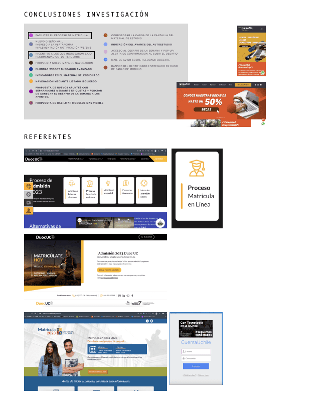 Para esta solicitud, nos basamos en la investigación hecha en nuestro proyecto anterior de mejoras para la plataforma interna del estudiante. Ya que dentro de esta investigación obtuvimos conclusiones y resultados de todo el flujo del estudiante, pasando externamente por la web.